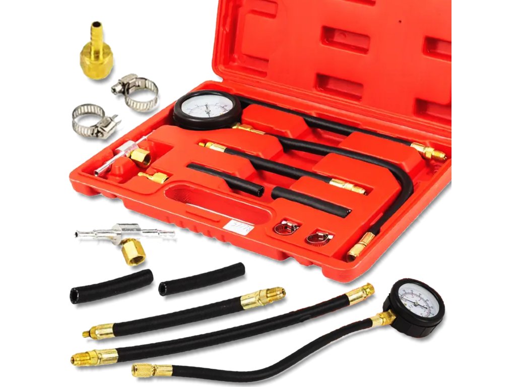 Forcekraft je spolehlivá a přesná sada pro měření tlaku paliva v benzínových i vznětových motorech. Vybavená analogovým manometrem a různými přípojkami umožňuje rychlé a přesné ověření tlaku v palivovém systému – jak u osobních vozů, tak u lehkých užitkových vozidel.