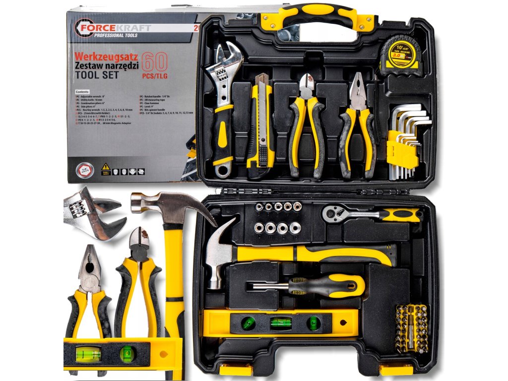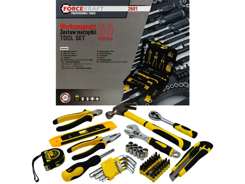 Představujeme praktickou sadu nářadí FORCEKRAFT o 60 dílech, ideální pro běžné domácí opravy, skládání nábytku, rekonstrukce a servisní práce. Vhodné pro profesionály i kutily, kteří oceňují funkčnost, kvalitu a pohodlí při práci.