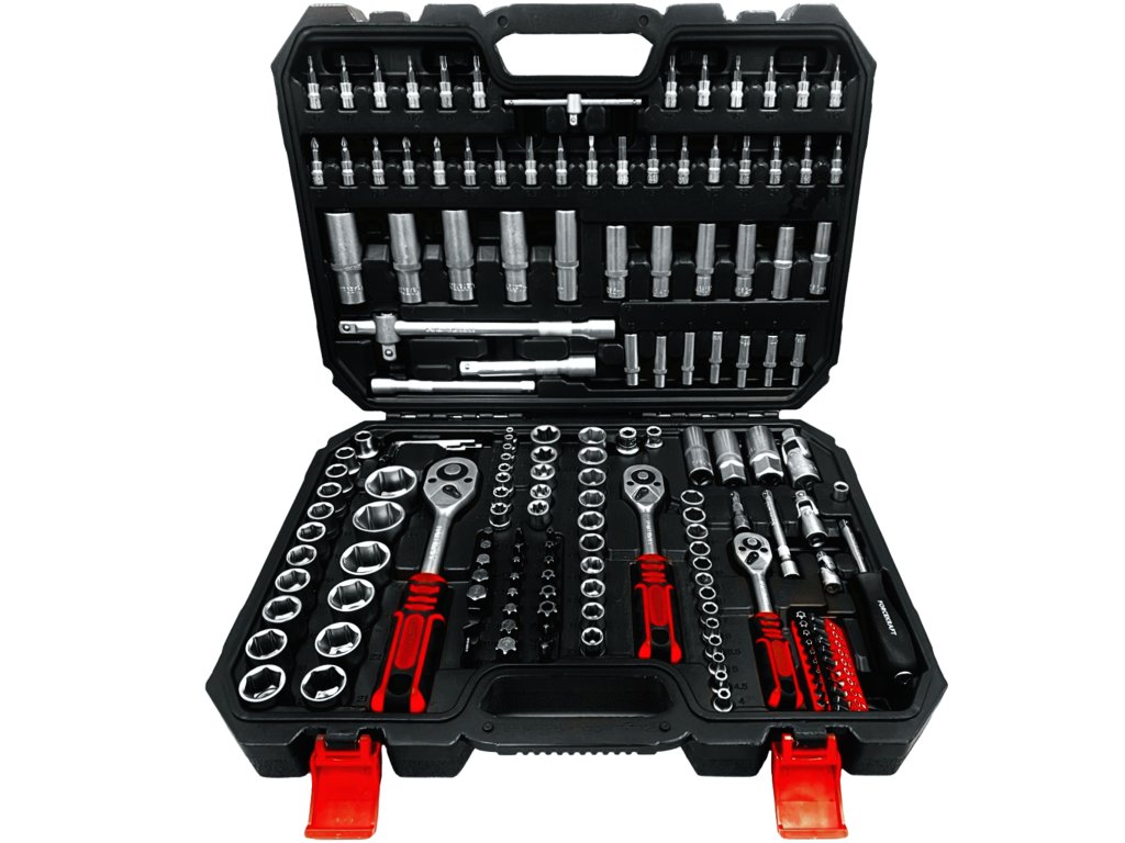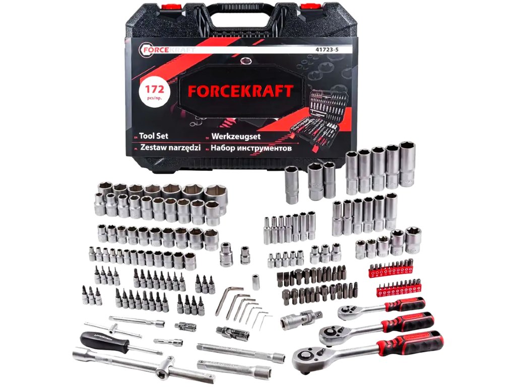 Kompletní, všestranná a odolná sada nářadí značky Forcekraft, navržená pro profesionály i náročné uživatele. Sestává z 172 precizně zpracovaných dílů a tvoří základní vybavení každé dílny, autoservisu nebo domácí garáže. Díky kvalitě, ergonomii a bohatému vybavení umožňuje efektivní práci v různých situacích.