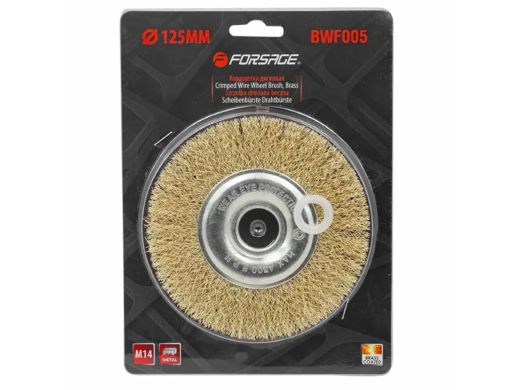 Mosazný kotoučový kartáč o průměru 125 mm je vysoce univerzální a efektivní nástroj určený pro práci s úhlovými bruskami. Díky montážnímu otvoru 22,2 mm je kompatibilní s většinou běžných modelů brusek. Vyrobený z kvalitního mosazného drátu nabízí výjimečnou odolnost, pružnost a odolnost proti korozi — skvělá volba jak pro profesionální použití v dílnách, tak pro domácí práce.