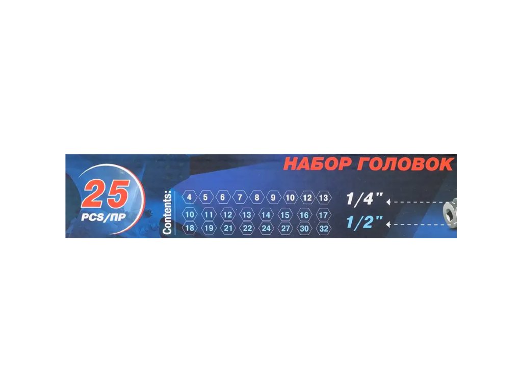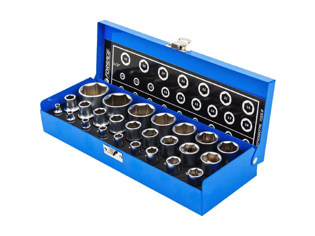Forsage sada 25 ks rázových 6hranných hlavic, 1/4" a 1/2", 4–32 mm