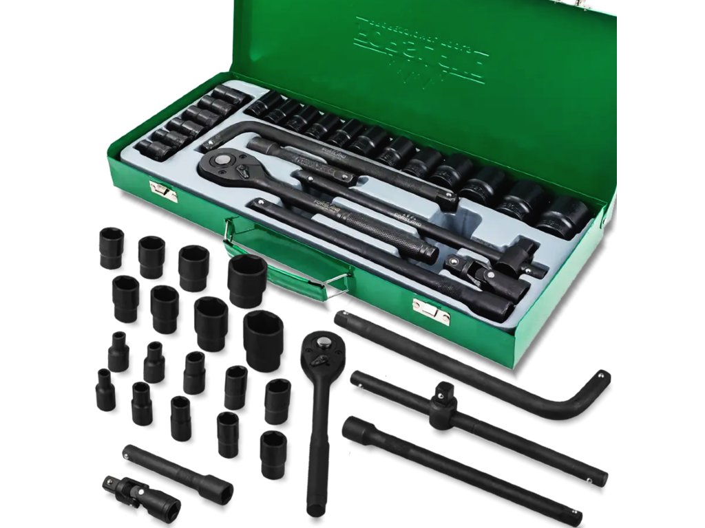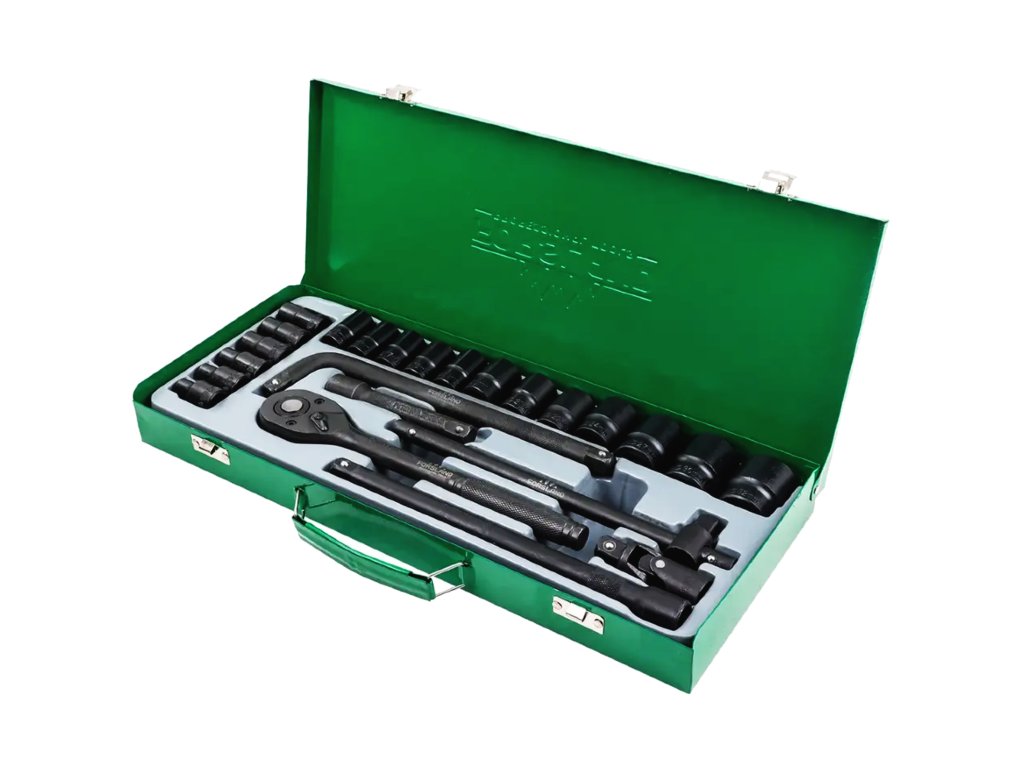 Profesionální sada nářadí 1/2" 24 ks (6hranné) je ideální volbou pro každého, kdo si cení spolehlivosti, odolnosti a komfortu práce. Obsahuje kompletní sadu nástrojů určených pro montáž a demontáž velkých závitových spojů — jak v profesionálních dílnách, tak v domácí garáži.