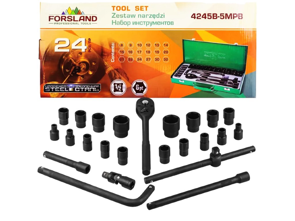 FORSLAND Sada nástrčných hlavic 1/2" 6hranné 8–32 mm, 24 ks + kufr