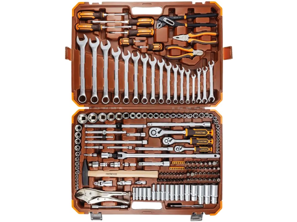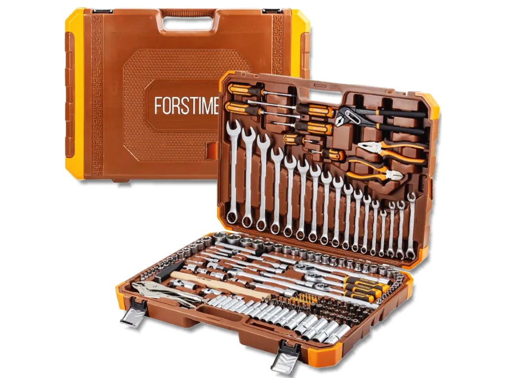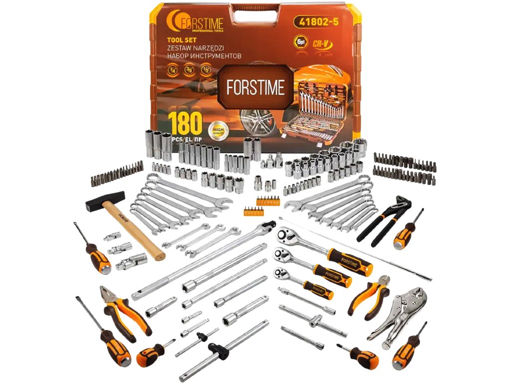 FORSTIME velká sada nářadí 180 dílů, nástrčné hlavice 1/4", 3/8", 1/2", 6hranné, 4-32 mm
