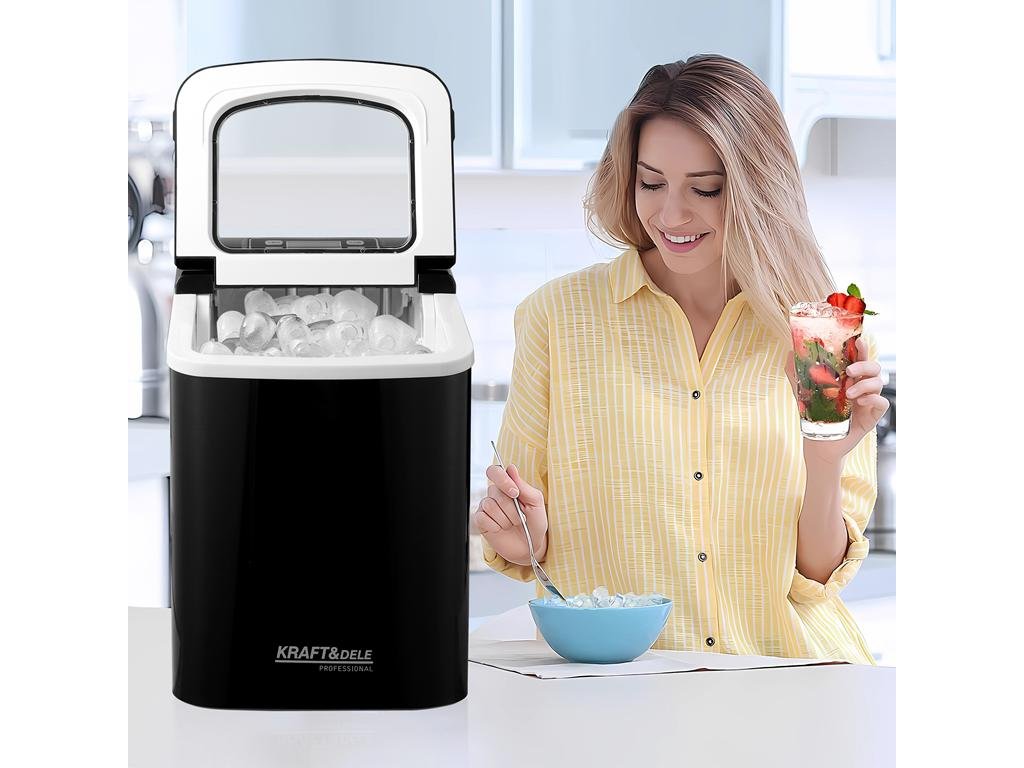 KD4123 je moderní výrobník ledových kostek, který se osvědčí jak doma, tak v kanceláři, na zahradě či na oslavě. Díky kompaktní konstrukci a intuitivní obsluze rychle a pohodlně připravíte čerstvé ledové kostky – bez nutnosti připojení k vodovodnímu řádu.