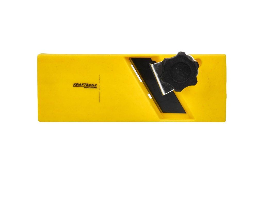 Strug na sádrokartonové desky značky Kraft&Dele model KD11259 je zařízení určené k fazetování a vyrovnávání hran sádrokartonových desek. V pracovní rovině má dva kanály vedené pod úhlem 90°. První slouží k oboustrannému fazetování hran do úhlu 45°. Druhý slouží k plošnému vyrovnání hran desek o tloušťce 15 a 18 mm.