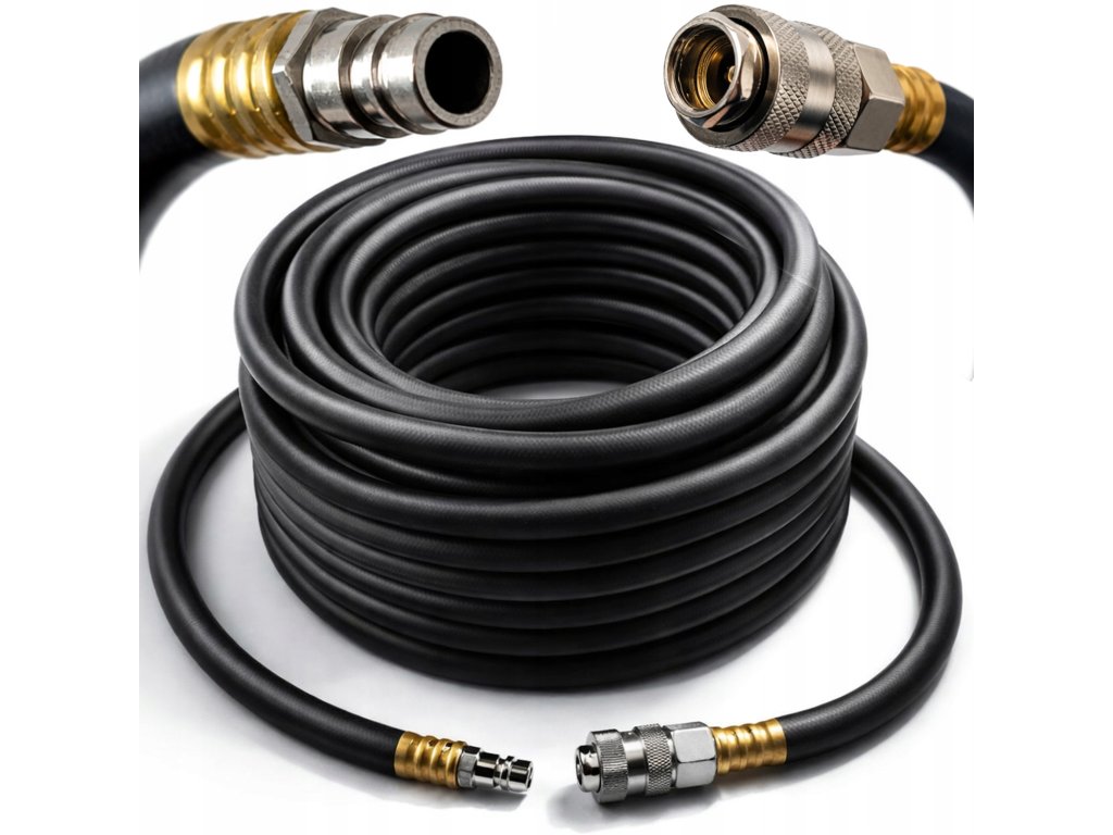 Gumová pneumatická hadice 15 m, 10x17 mm, 20 bar s rychlospojkami