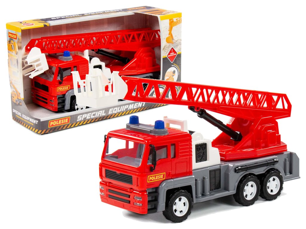 Červený hasičský vůz umožňuje dítěti cítit se jako skutečný hasič. Autíčko má 70 cm výsuvný žebřík. Kromě toho je možné se pohybovat nahoru a dolů a otáčet se. Hraní s tímto autíčkem jistě přinese vašemu dítěti spoustu radosti. Struktura kol není hladká, má jazýčky napodobující běhoun, což usnadňuje a zpříjemňuje jízdu na nerovném povrchu.