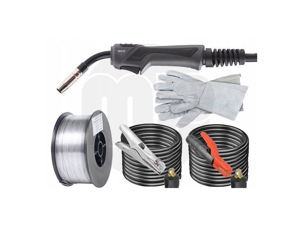 - Příslušenství v balení: Masový držák, elektrodový držák, držák EURO MIG/MAG, kartáč s kladivem, ruční maska a svářečské rukavice.