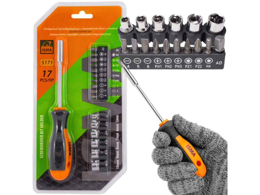 ISMA Sada univerzálního šroubováku s bity, 17 ks.
