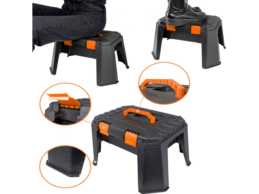 - Funkce: kufr na nářadí, stolička a mini-žebřík