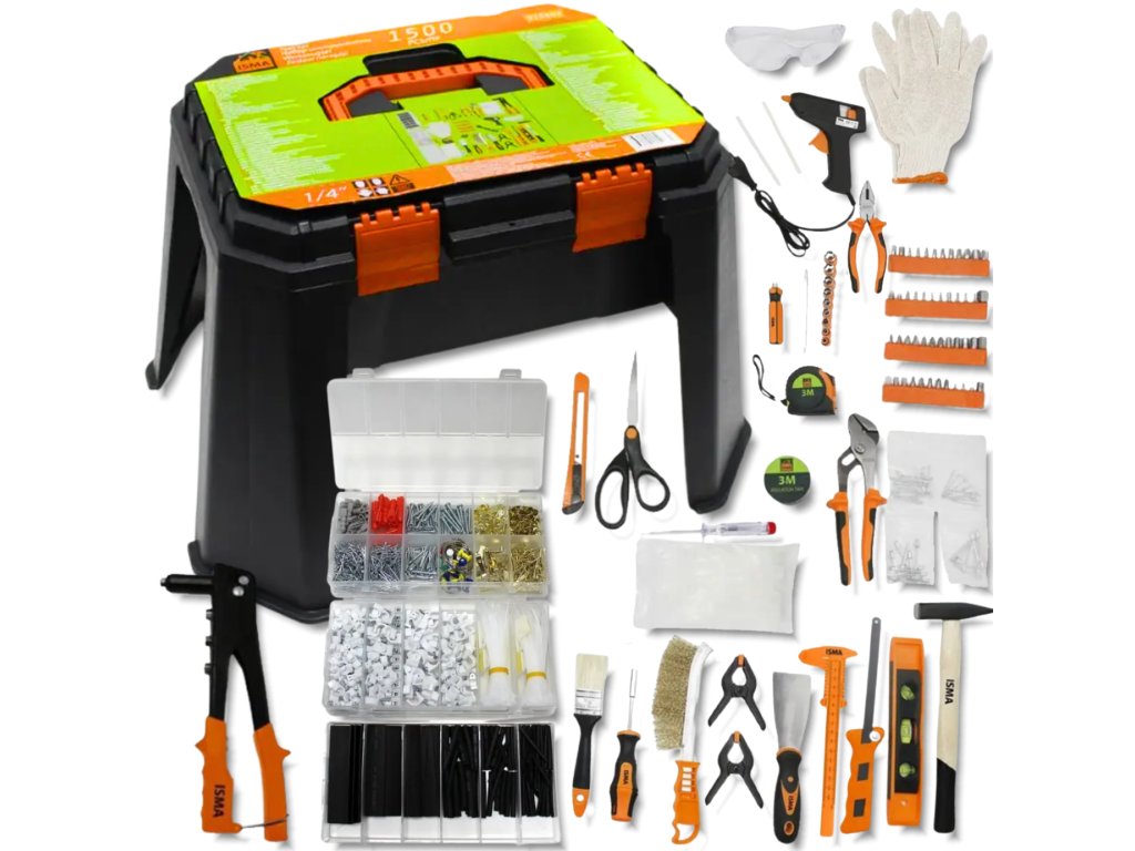 ISMA velká univerzální sada nářadí v kufru se stoličkou, 1500 dílů