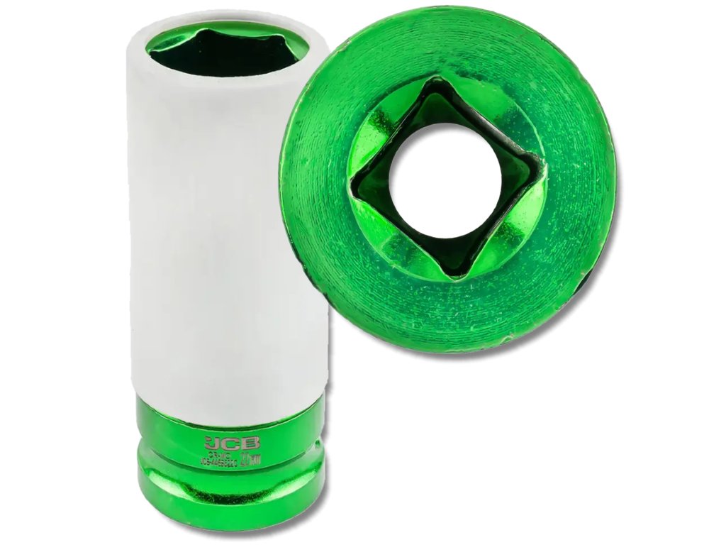 JCB hluboká nástrčná hlavice na alu kola s ochrannou vložkou 1/2" 22 mm, Cr-Mo