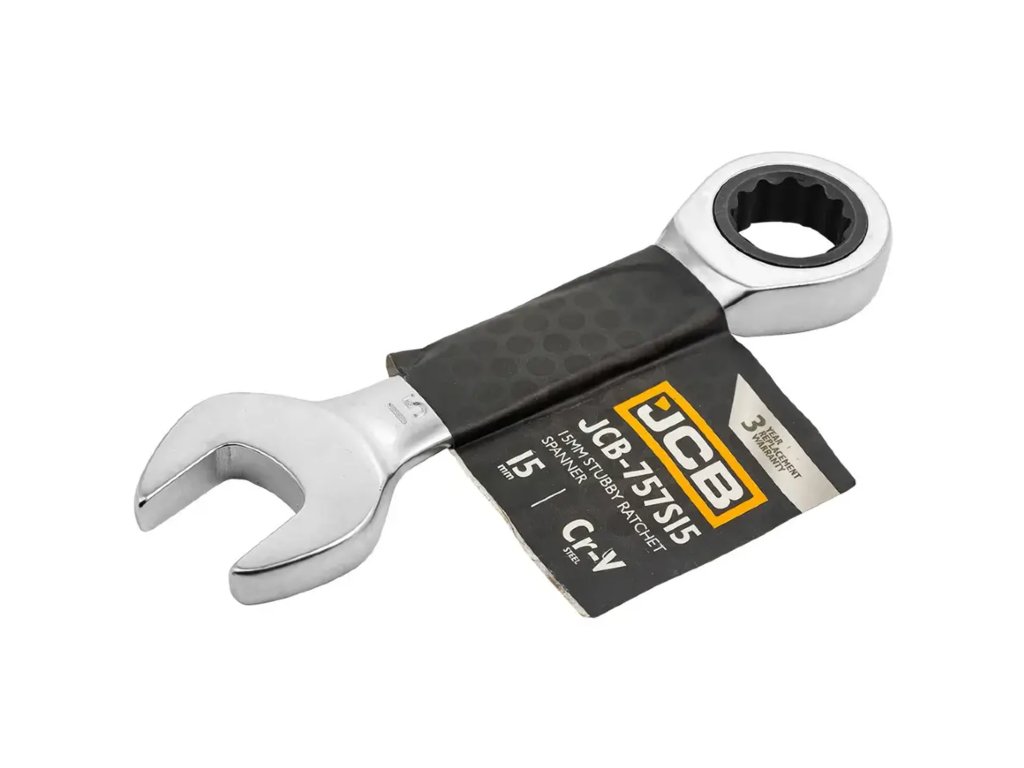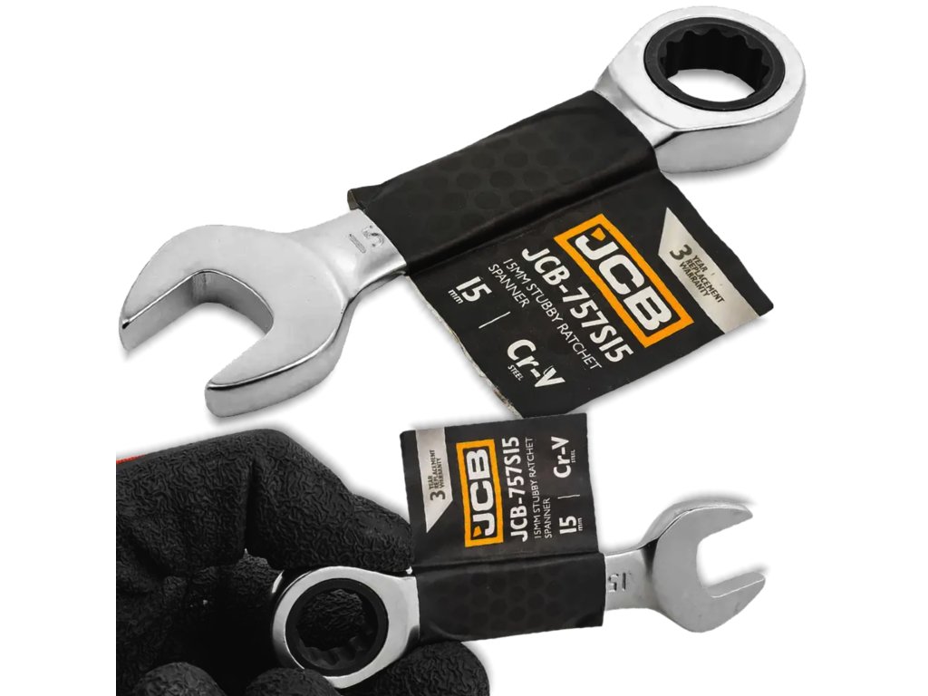 JCB krátký kombinovaný klíč 15 mm, Cr-V, s ráčnou