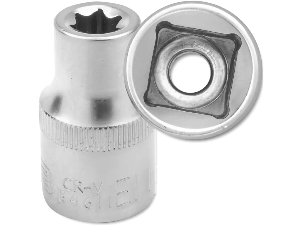 Nástrčná hlavice s profilem E11, 1/2” je spolehlivý a odolný nástroj určený pro práci s prvky se vnějším profilem Torx. Díky přesnému zpracování zajišťuje výborné přilnutí ke šroubům a maticím a snižuje riziko prokluzu a poškození sedel.