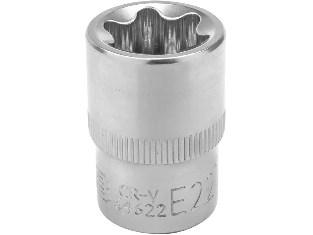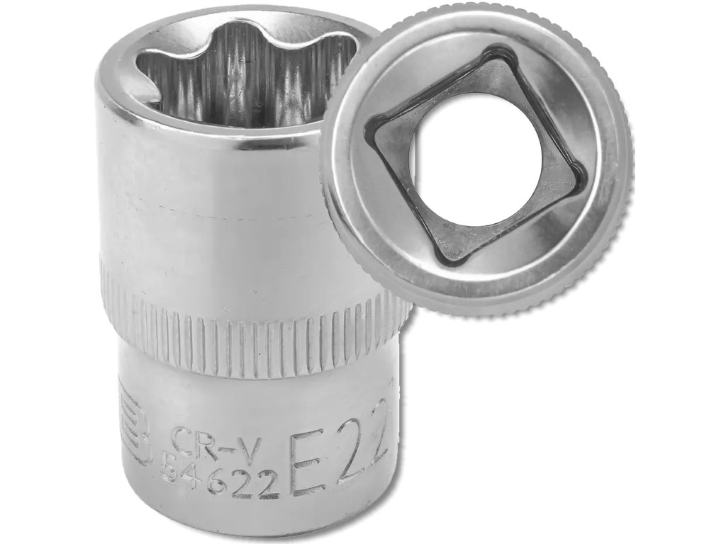 Nástrčná hlavice s profilem E22, 1/2" je spolehlivý a odolný nástroj určený pro práci se spojovacím materiálem s vnějším profilem Torx. Díky přesnému zpracování zaručuje vynikající přiléhání ke šroubům a maticím, čímž snižuje riziko prokluzu a poškození sedel.