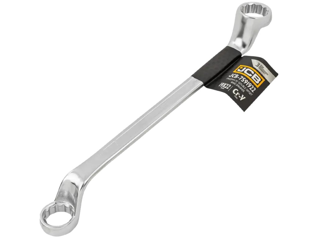 JCB oboustranný očkový klíč, zahnutý 75°, 19x22 mm, Cr‑V, 12hranný