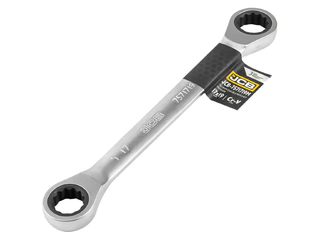 JCB oboustranný očkový klíč s ráčnou 17 x 19 mm, Cr-V, 12hranný