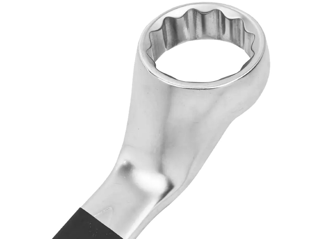 Očkoplochý klíč 27 mm ohnutý pod úhlem 75° je nástroj navržený pro práci na těžko přístupných místech. Speciální konstrukce s hlubokým odsazením poskytuje dodatečný odstup, díky čemuž lze volně uchopit a otáčet spojovací prvky i v případech, kdy běžné klíče nebo ráčny selhávají.