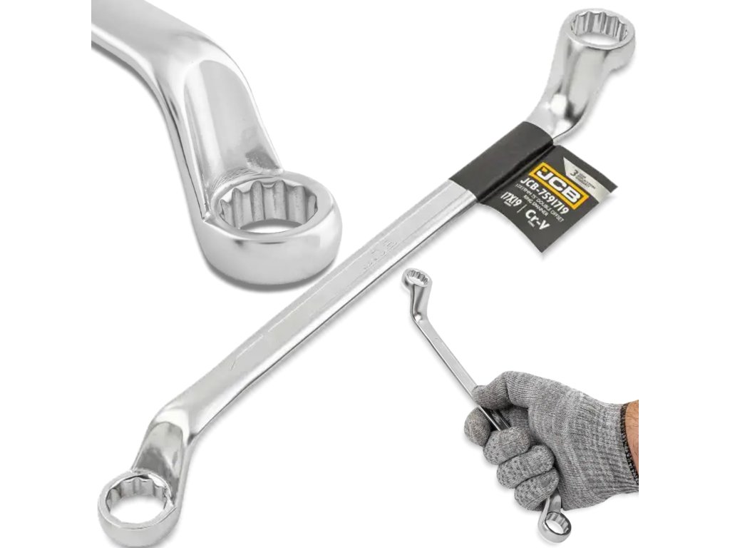 JCB očkový klíč, oboustranný, zahnutý o 75°, 17×19 mm, Cr-V, 12hranný