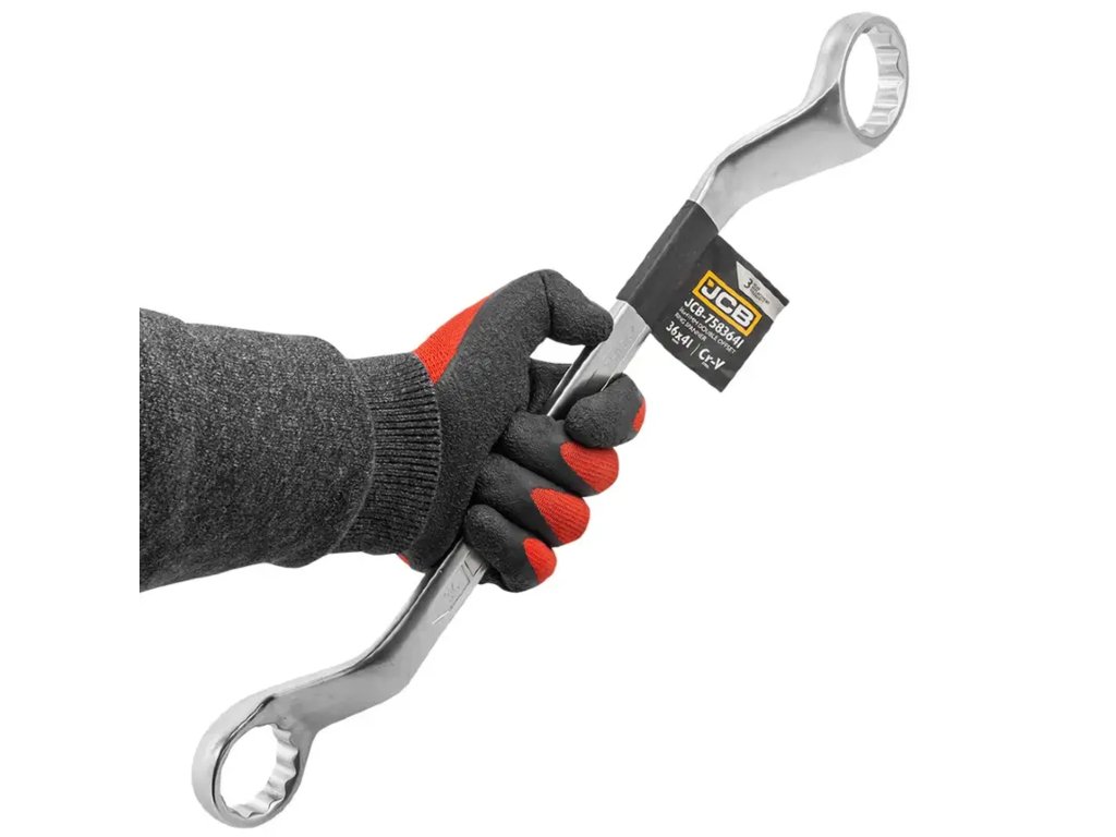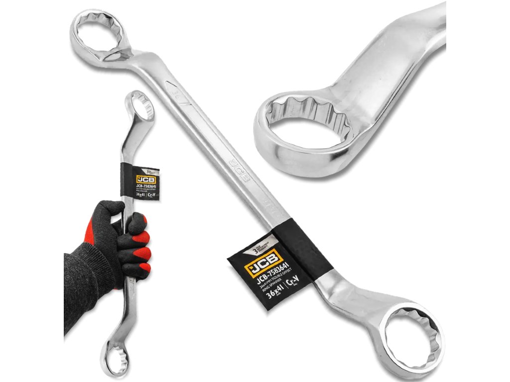 JCB očkový klíč oboustranný, zahnutý 45°, 36×41 mm, Cr‑V, 12hranný
