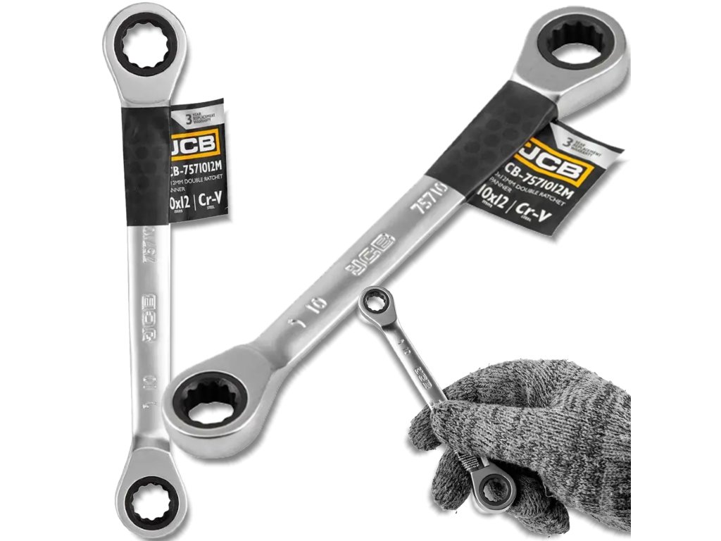 JCB Očkový klíč oboustranný s ráčnou 10×12 mm, Cr-V, 12hranný