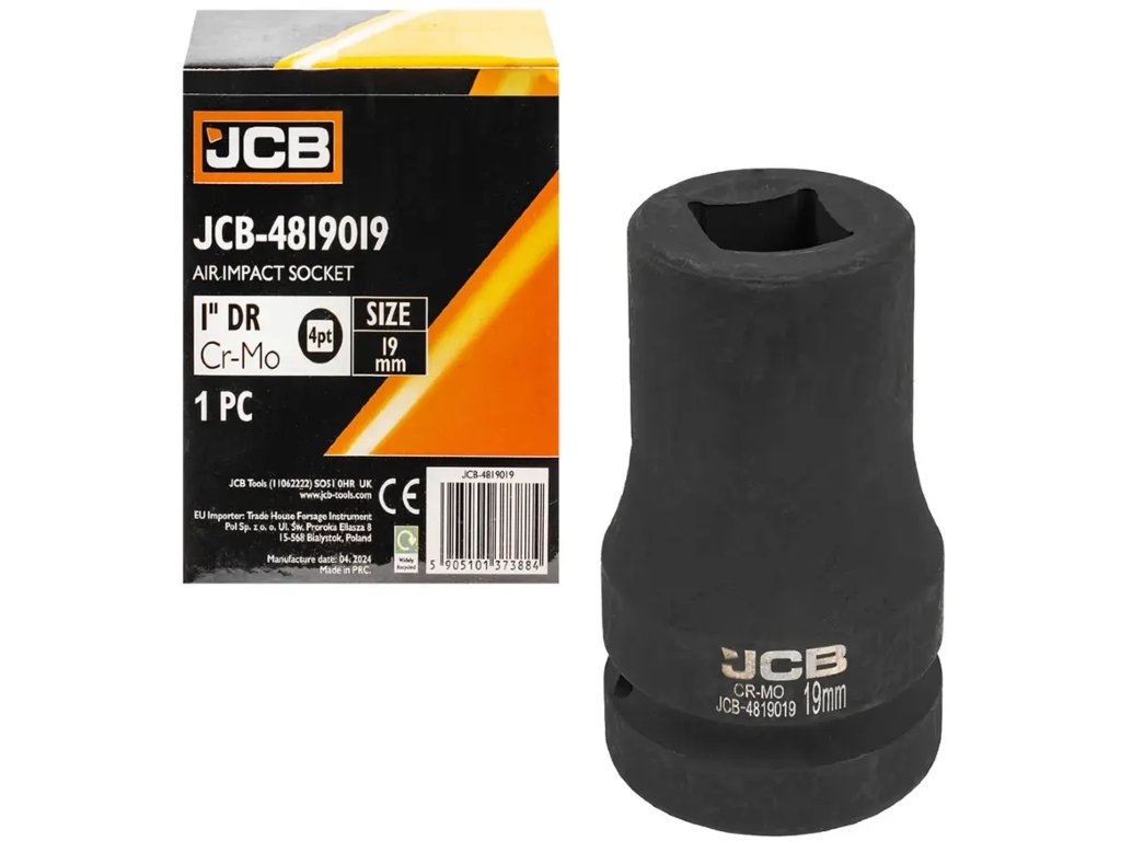 JCB Rázová hlavice 1", 19 mm, 4hranná, Cr-Mo