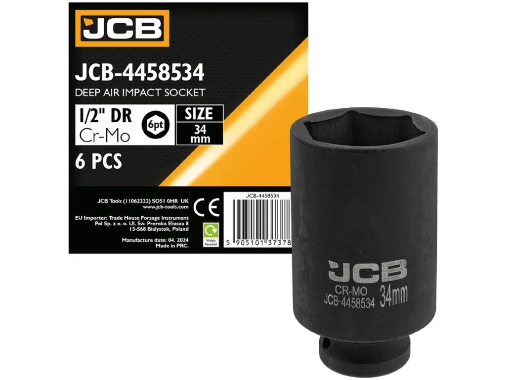 JCB rázová hlavice hluboká 1/2", 34 mm, 6hranná, Cr-Mo