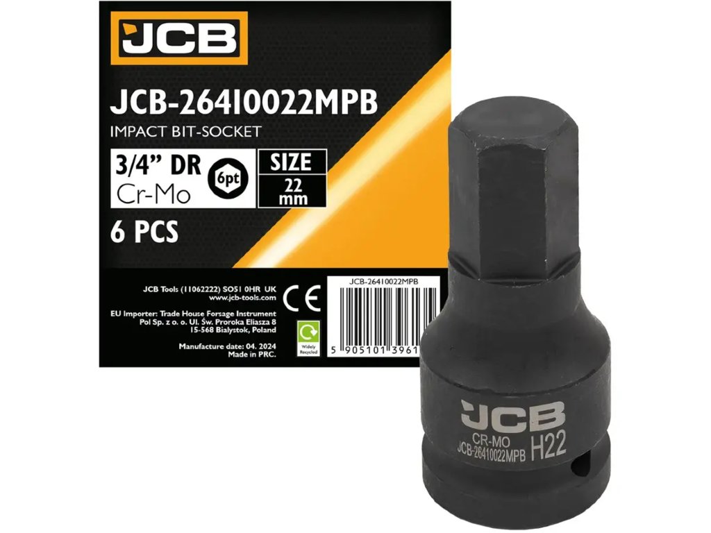 JCB Rázová hlavice na bity 3/4" 22 mm, 6hranná, Cr-Mo