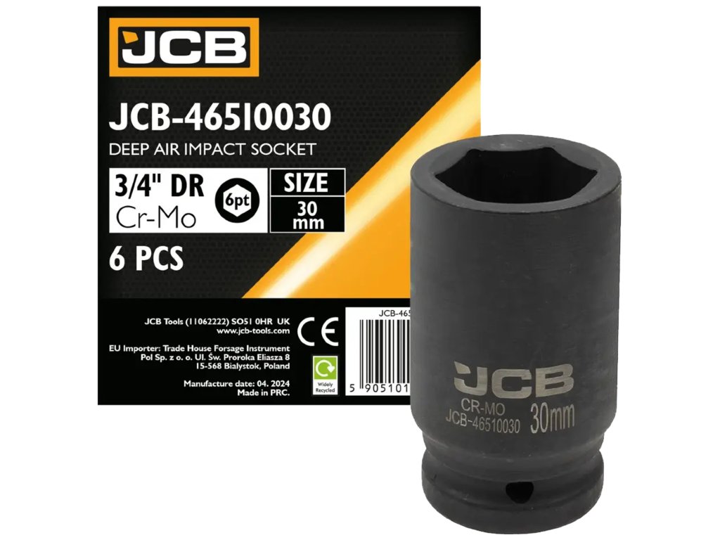JCB rázová hluboká hlavice 3/4" (30 mm), 6hranná, Cr-Mo