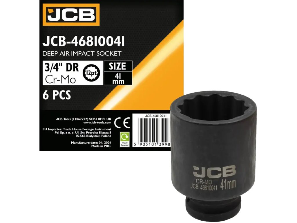 JCB Rázová hluboká hlavice 3/4", 41 mm, 12hranná, Cr-Mo
