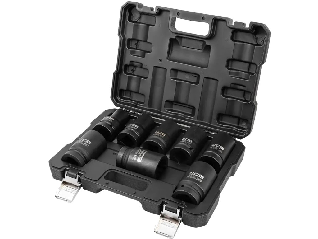 Sada 8 hlubokých rázových hlavic JCB Tools je profesionální nástroj určený pro intenzivní dílenské práce, včetně montáží a demontáží šroubů a matic s použitím rázových nářadí.