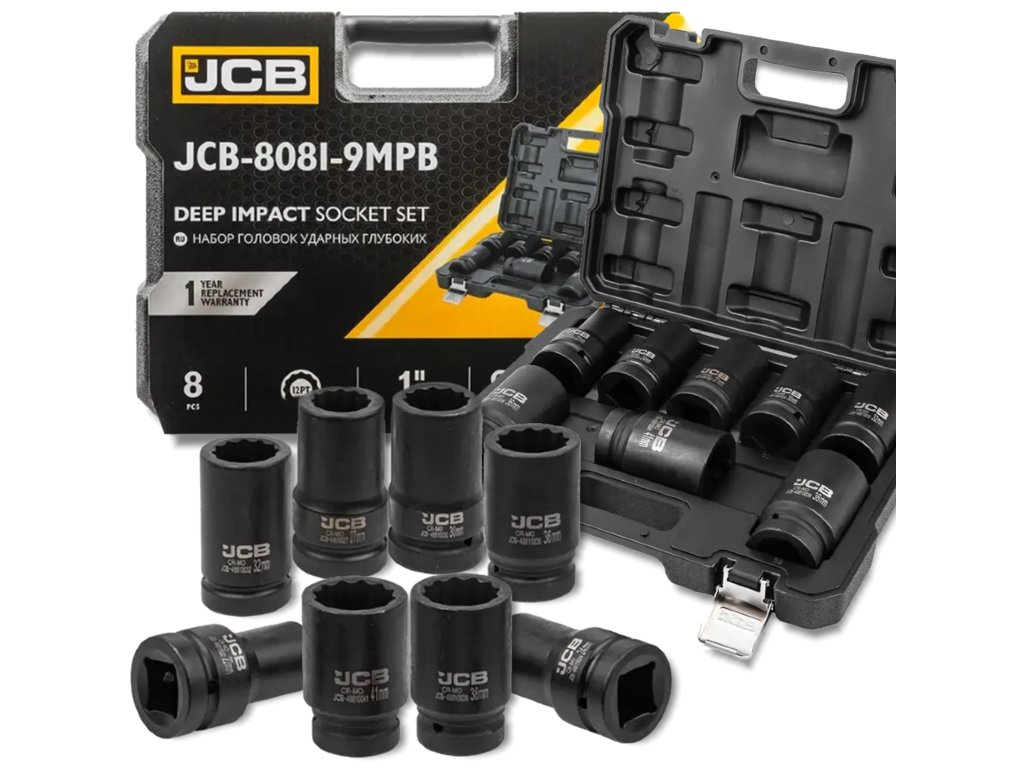 JCB Sada hlubokých rázových hlavic 1", 12hranné, Cr-Mo, 8 ks