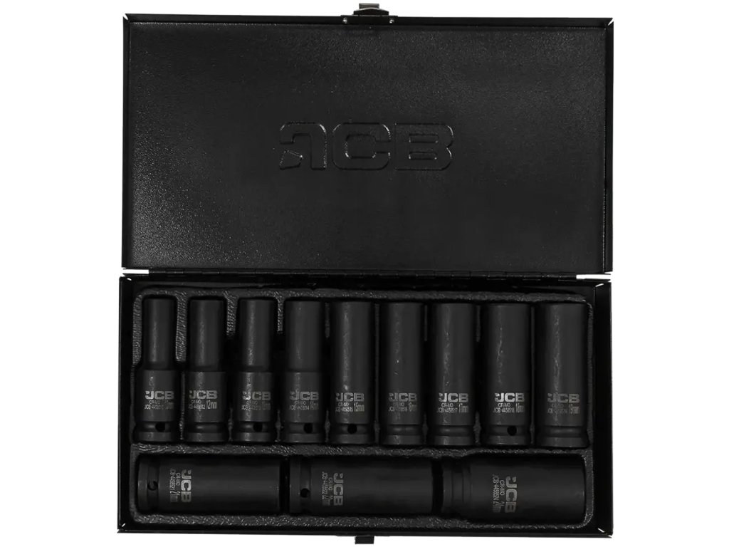 JCB sada hlubokých rázových hlavic 1/2" 6hranné, Cr-Mo, 12 dílů