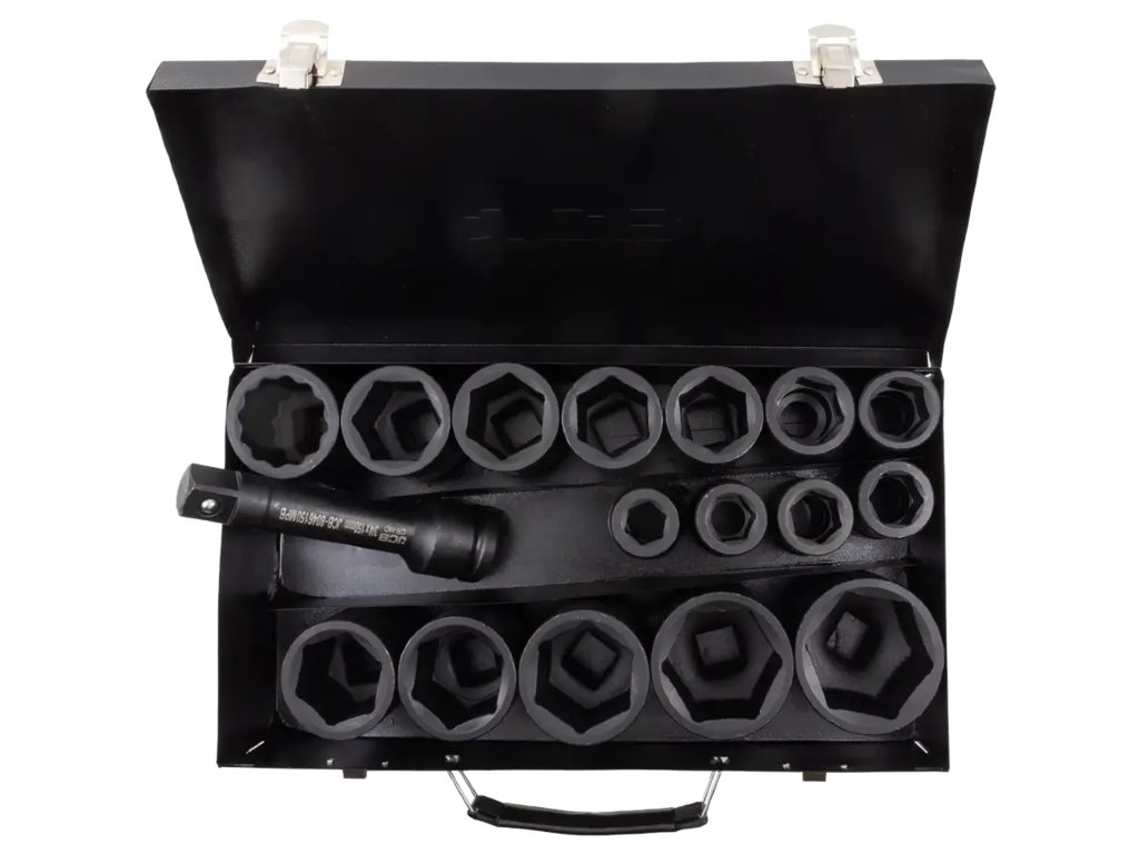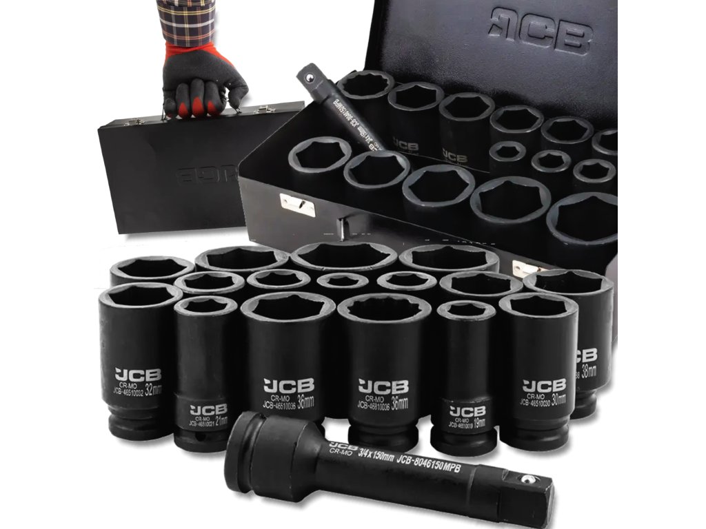 Sada 17 hlubokých rázových hlavic JCB Tools je profesionální nástroj určený pro intenzivní dílenskou práci, včetně montáže a demontáže šroubů a matic s použitím rázových klíčů.