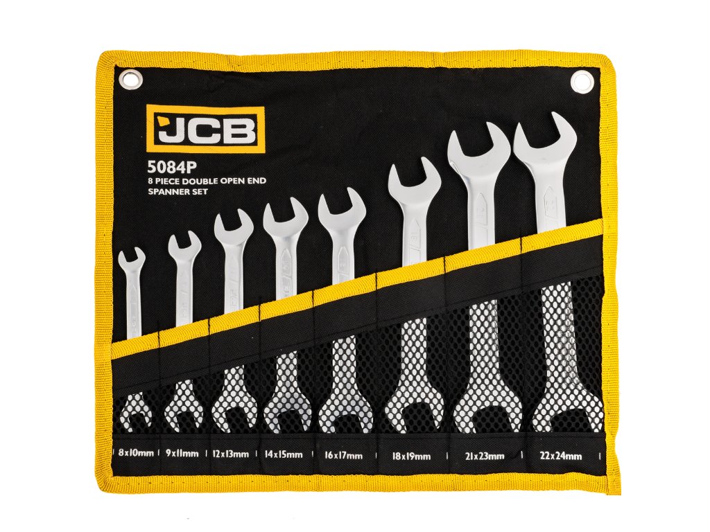 JCB Sada plochých oboustranných klíčů 8 ks, 8–24 mm, Cr-V v pouzdře