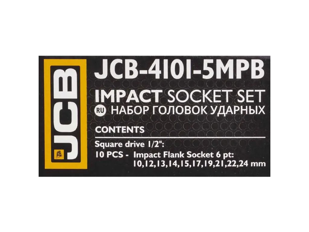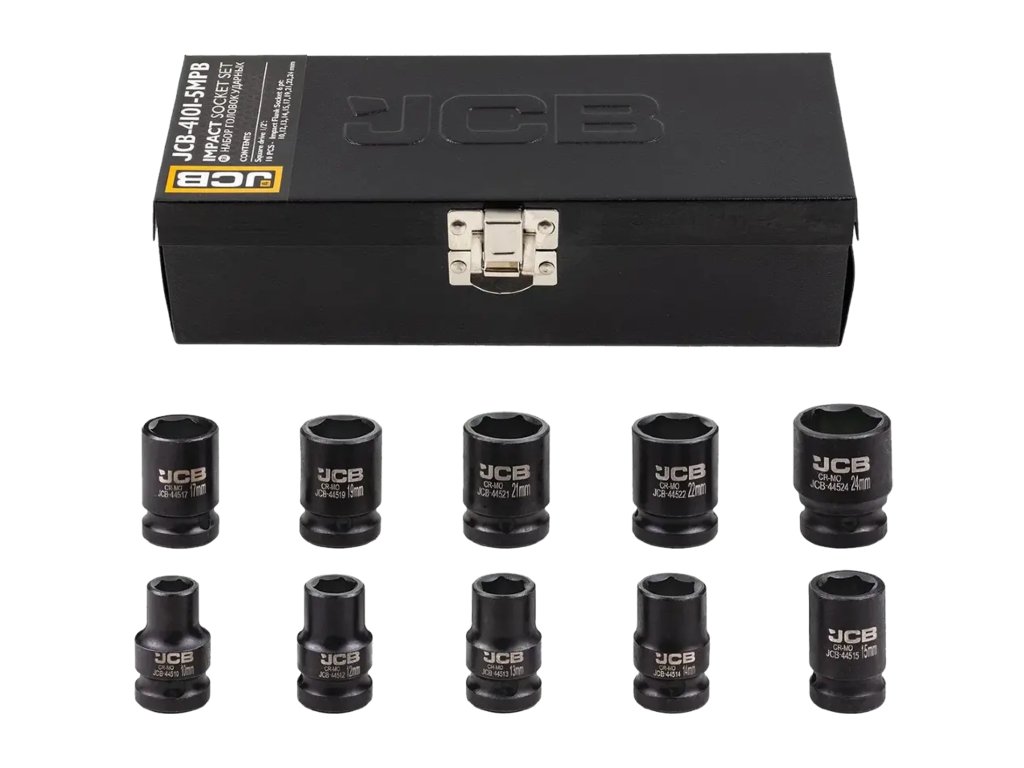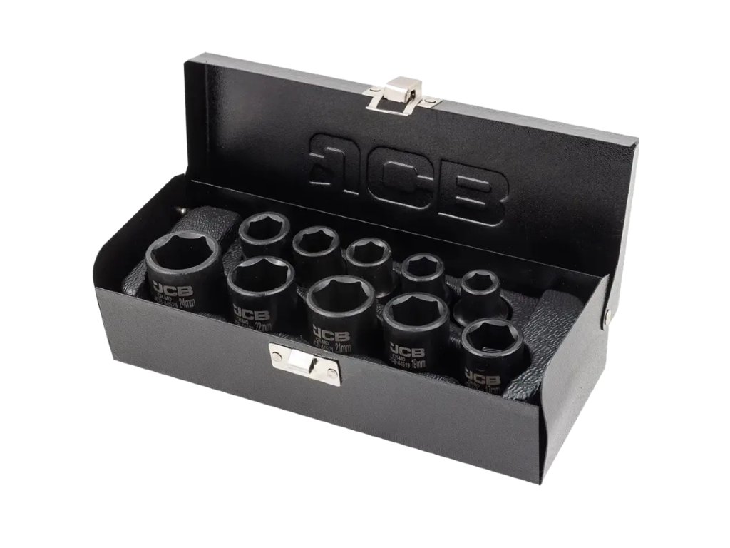 JCB sada rázových hlavic 1/2" Cr-Mo, 6hranné, 10 dílů, 10–24 mm