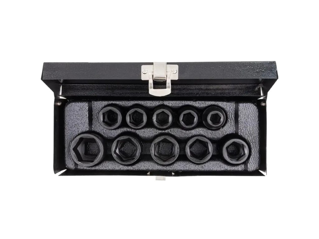 JCB-4159-5MPB je kompletní sada 10 rázových hlavic určená pro nejnáročnější úkoly v dílnách, autoservisech a montážních pracích. Vyrobené z vysoce pevné oceli Cr-Mo (chrom-molybdenové), hlavice nabízejí vynikající odolnost proti praskání, rázům a deformacím i při práci s pneumatickými nebo elektrickými rázovými klíči.