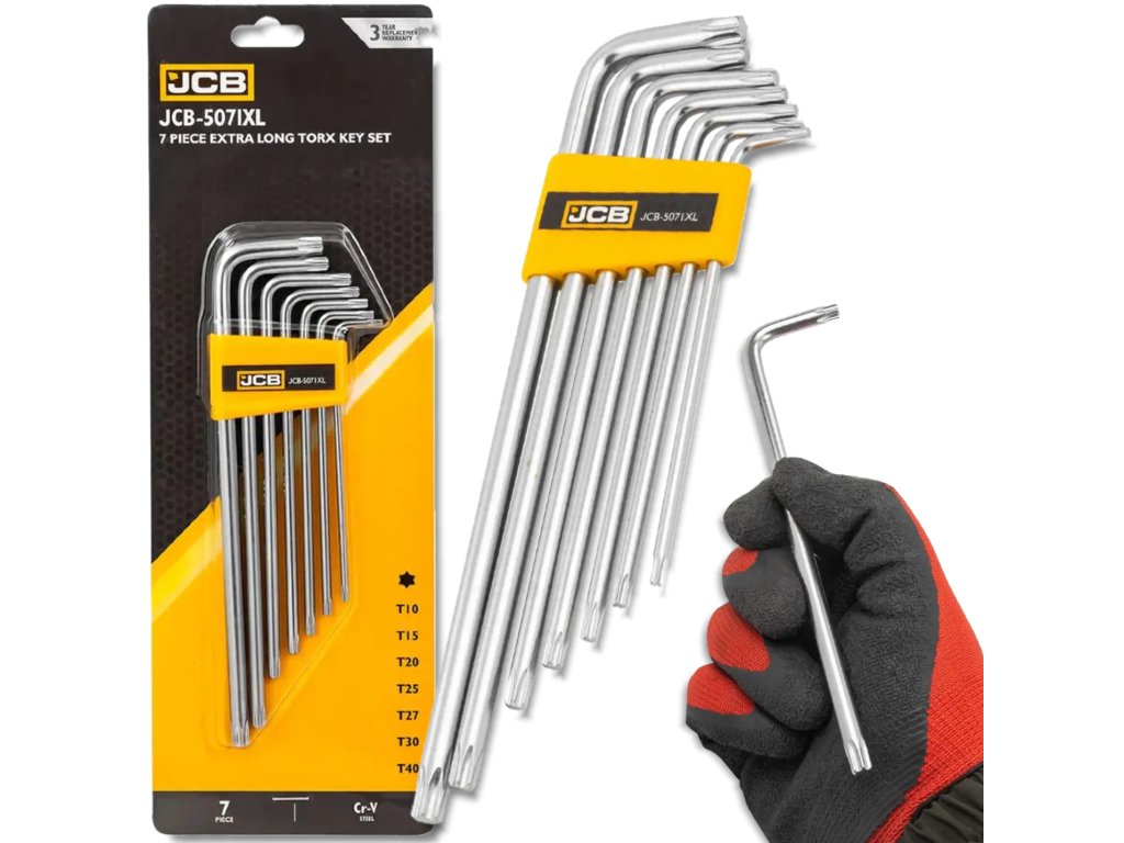 JCB sada TORX klíčů L, extra dlouhé, 7 ks, T10–T40, Cr‑V