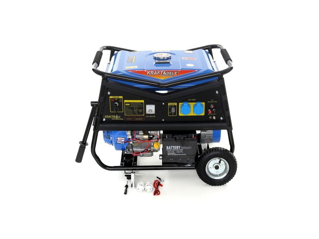 Přenosný jednofázový elektrocentrála KD145 značky Kraft&Dele je určena k výrobě střídavého proudu 220V-230V pomocí japonského OHV 4taktního spalovacího motoru s výkonem 7 HP a maximálním výkonem generátoru 5000W.
