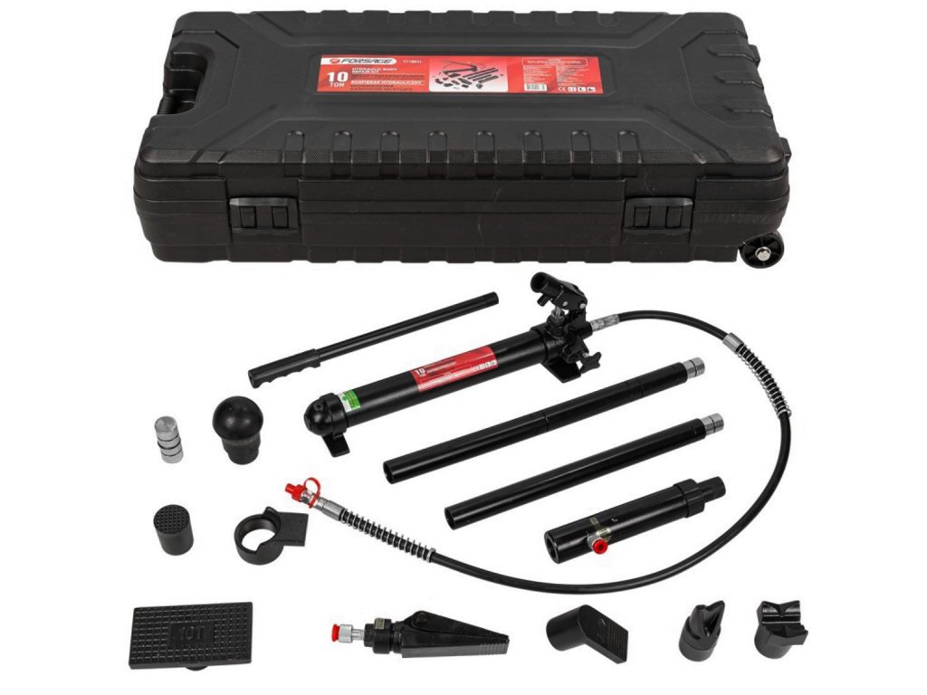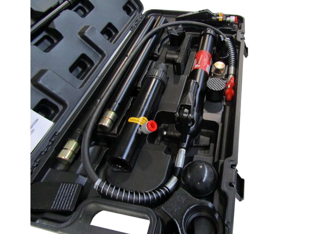 Sada obsahuje hydraulické čerpadlo, válce, prodlužky a zahnuté nástavce. Lze ji také doplnit o hydraulický válec s opačným směrem působení a upevňovací nástavce.