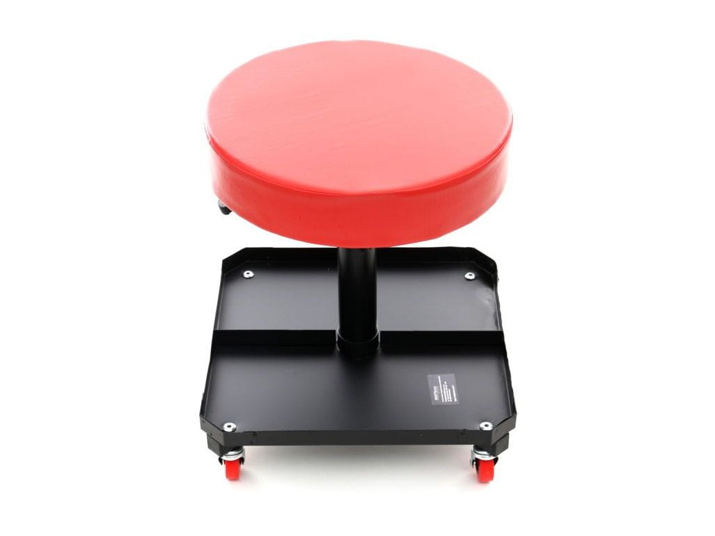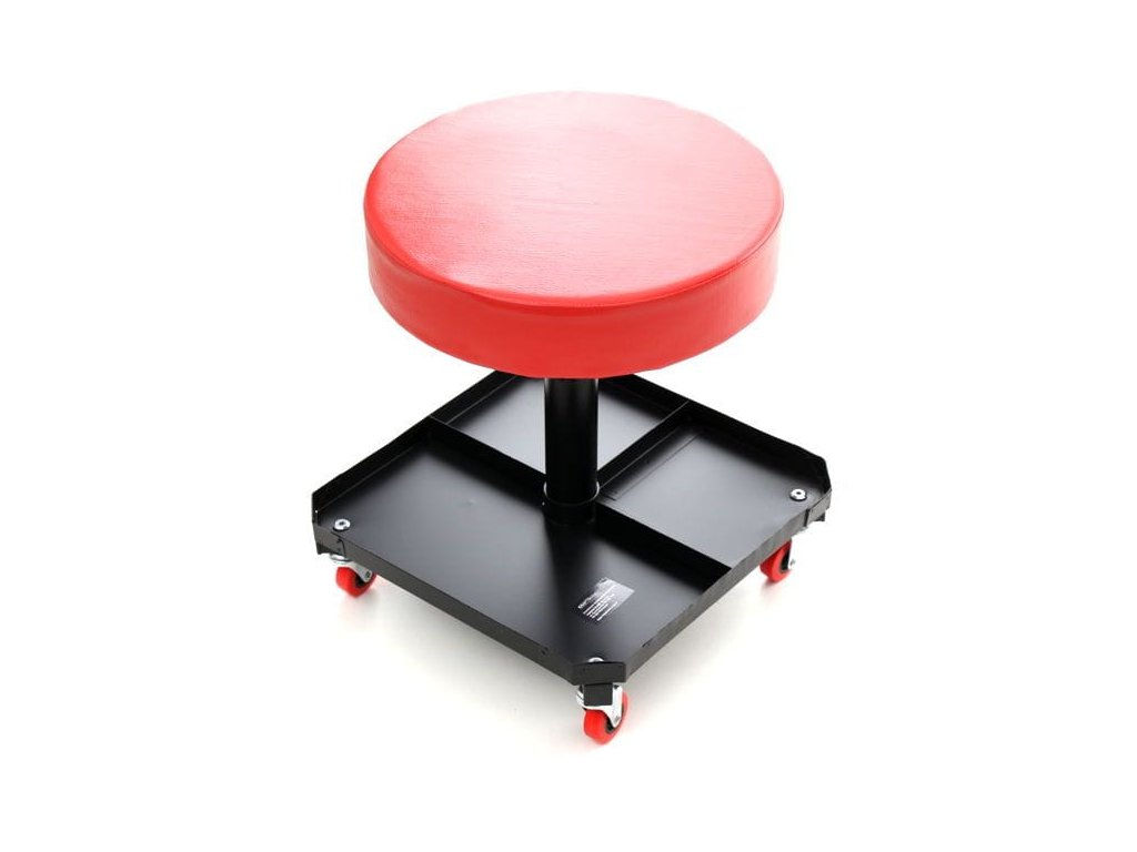 Pro lepší pohodlí je celé sedadlo otočné o 360°, stolička je vybavená poličkou na nářadí, klíče a šrouby, které používáte při práci. Nemusíte se bát nářadí ležícího na zemi!