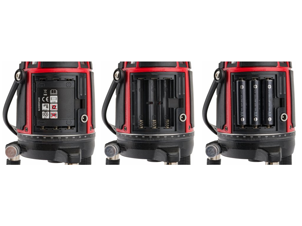 - Napájení: li-ion akumulátor (3,7 V / 3 Ah) nebo 3x AA baterie 1,5 V