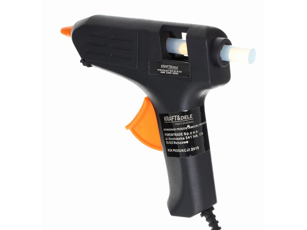 Pistole na tavné lepidlo značky Kraft&Dele model KD10350 je vyroben z vysoce kvalitních materiálů, které zajišťují pohodlnou práci. Jeho konstrukce je lehká a pevná. Precizní spoušť usnadňuje práci a umožňuje plynulé lepení. Tento pistol má široké využití například doma, v kanceláři nebo v dílně. Je nepostradatelný pro lepení tkanin, různých materiálů, dřeva, plastu, kůže a také při dekorativních pracích.