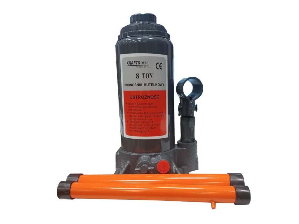Hydraulický zvedák značky Kraft&Dele, model KD1983 s nosnou konstrukcí umožňuje zvedání břemen až do 8 tun. Toto nářadí je nezbytné pro práce vyžadující postupné použití velké síly, například při zvedání jedné strany automobilu nebo jiného stroje.