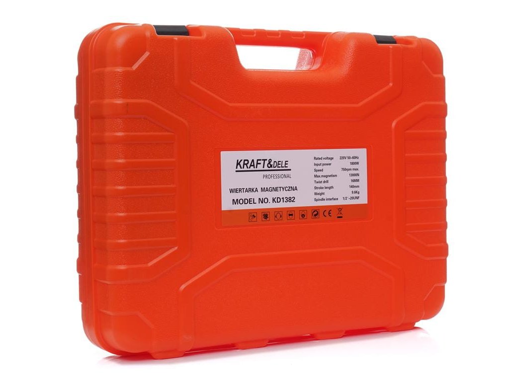 Přenosná vrtačka s magnetickým stojanem značky Kraft&Dele, model KD1382, je ideální zařízení pro vrtání, zahlubování a rozšiřování otvorů. Nachází uplatnění při stavbě mostů, v železnici, chemickém průmyslu, lodním průmyslu a dalších odvětvích, kde se zpracovává ocel a železo. Zařízení funguje spolehlivě i v náročných pracovních podmínkách.