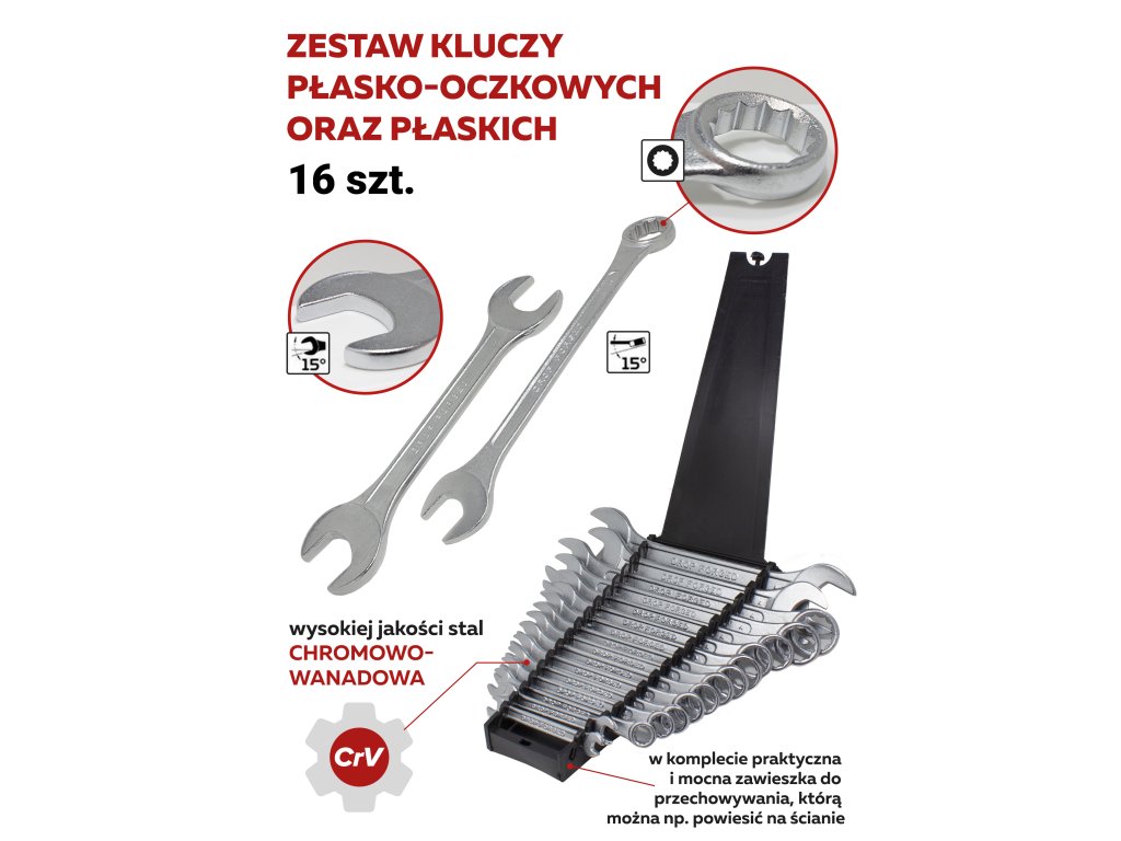 Sada očkoplochých klíčů vyrobená z oceli CrV.