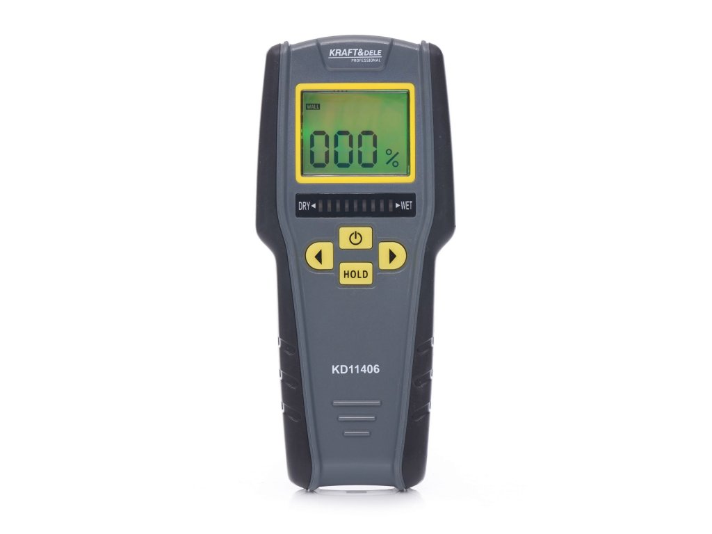 Měřič vlhkosti značky Kraft&Dele Model KD11406 je profesionální zařízení ideální pro použití v dřevařském průmyslu, testování textilií a papíru a skladování stavebních materiálů.