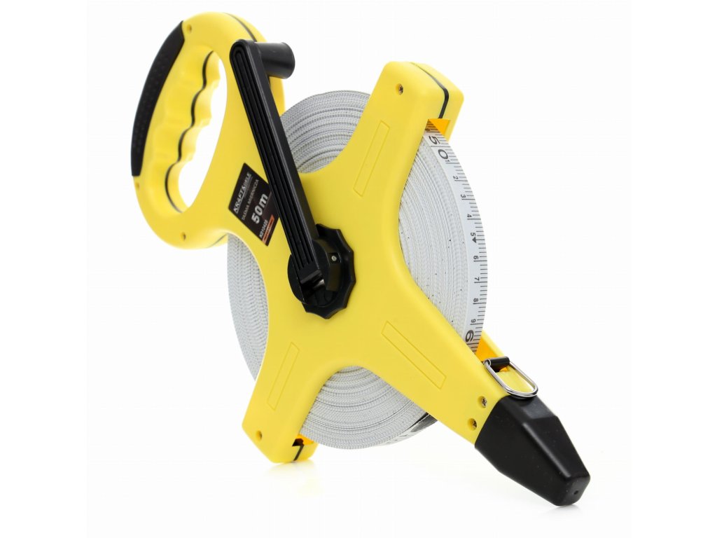 Profesionální měřicí pásmo značky Kraft&Dele. Odolná proti povětrnostním vlivům špička pro zapichování do země usnadňuje samostatné měření. Pomocnou funkcí pro obsluhu jednou osobou je také lanko připevněné na konci pásma. Ergonomii práce zajišťuje pohodlná rukojeť a plynule odvíjecí naviják.