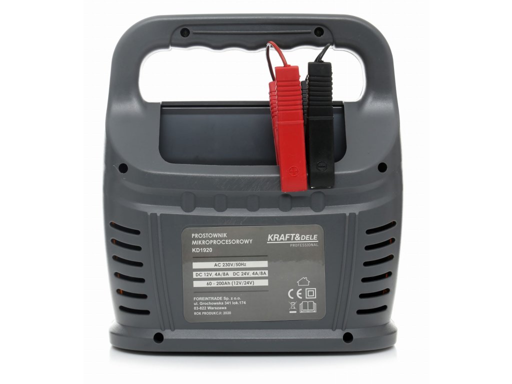 Mikroprocesorový prostownik KD1920 je spolehlivé zařízení pro nabíjení všech typů olověných kyselinových akumulátorů (WET/MF/CA/EFB/GEL/AGM). Doba nabíjení akumulátoru závisí na jeho jmenovité kapacitě a stupni vybití.